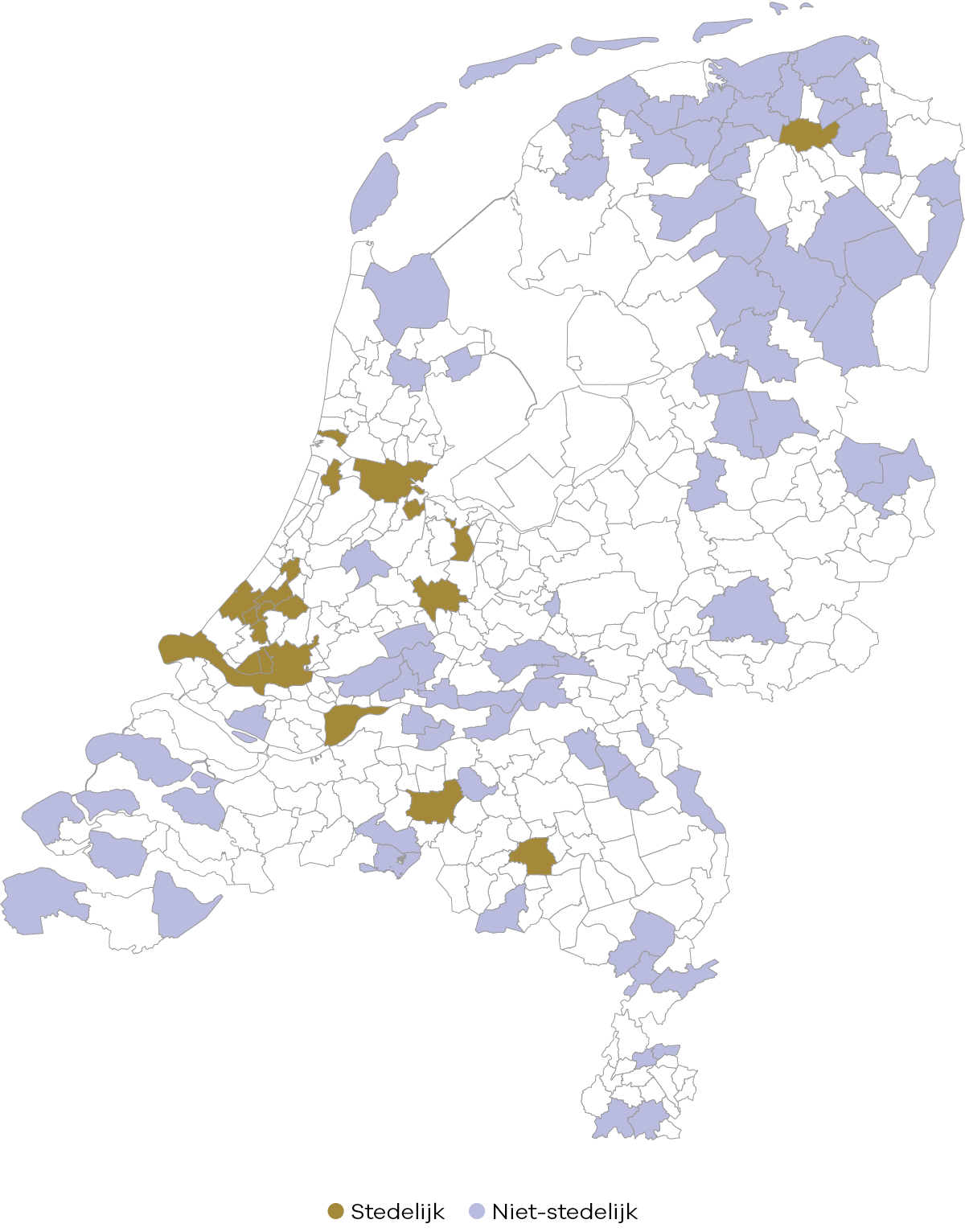 Figuur 1 Indeling gemeentes: sterk stedelijk gebied en niet-stedelijk gebied (bron: CBS)