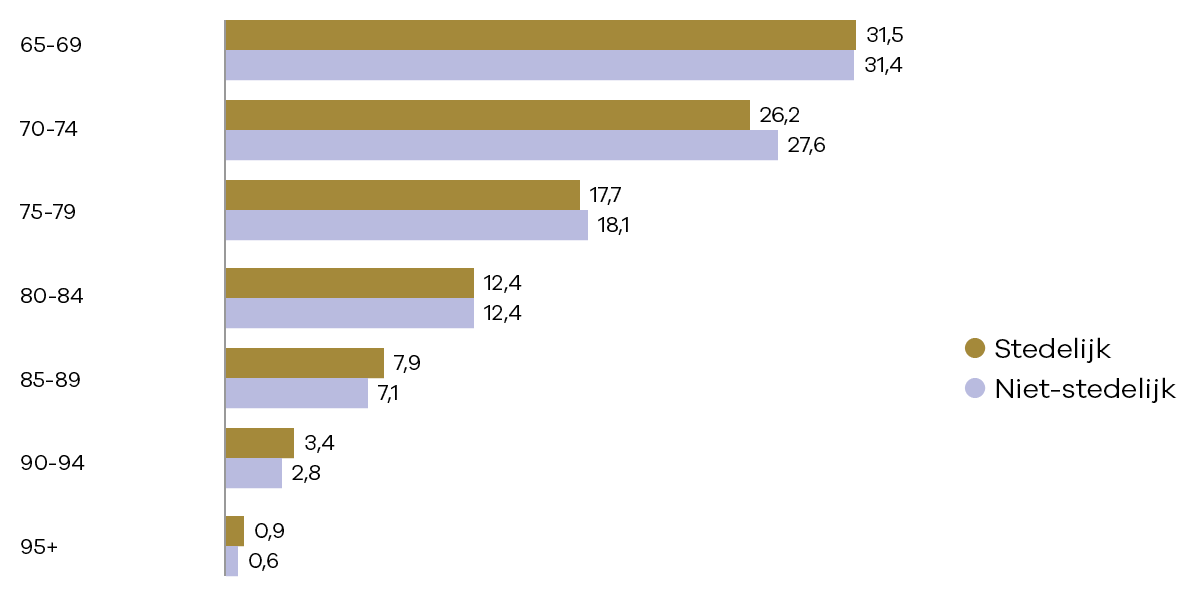 Figuur 3 Leeftijdsopbouw in sterk stedelijke versus niet-stedelijke gebieden: aandeel 80-plussers is lager in niet-stedelijk gebied