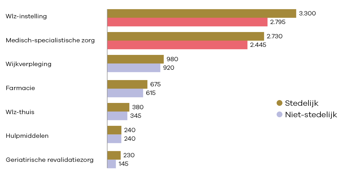 Prognose zorgkosten: sterk stedelijke versus niet-stedelijke gebieden