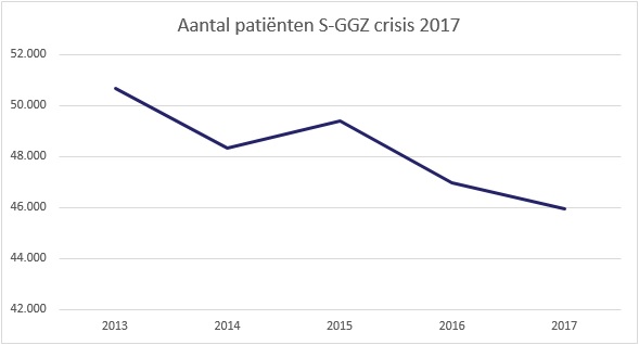 Het aantal volwassenen dat voor crisis wordt behandeld blijft dalen. Van 51 duizend in 2013 naar 46 duizend in 2017, dit is gemiddeld 0,4% van de volwassenen. Een deel van de mensen die in crisis raken wordt 1 of meerdere dagen opgenomen. In 2013 ging het om 39% van de mensen die in crisis raken, in 2017 is dat gedaald naar 36%.