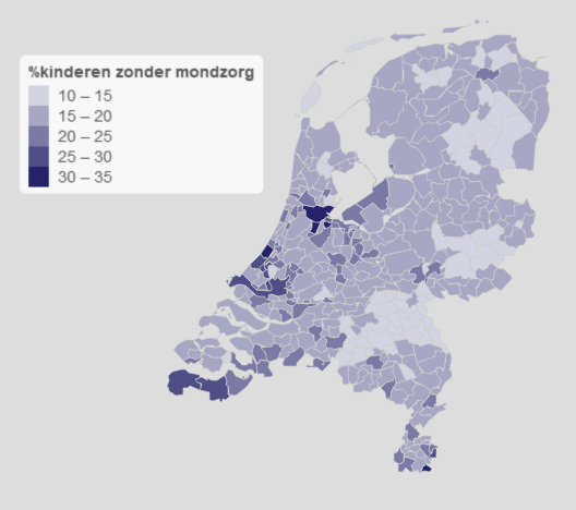 Gemeente Mook en Middelaar had met 10,9 het laagste percentage minderjarigen voor wie in 2017 én 2018 geen tandartscontrole is gedeclareerd. Gevolgd door Terschelling met 11,5% en Aa en Hunze met 11,6 %.