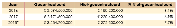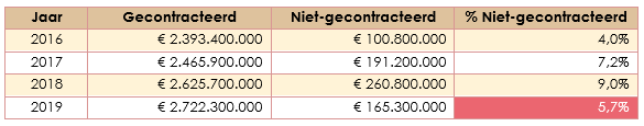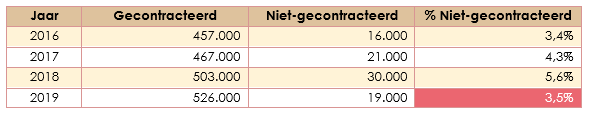 Aan de hand van deze cijfers over het aandeel niet-gecontracteerde zorg heeft Minister de Jonge besloten om het wetsvoorstel ‘bevorderen zorgcontractering’ niet in te dienen. Bij goedkeuring van dit voorstel kan de overheid voor bepaalde (deel)sectoren de hoogte van de vergoeding voor niet-gecontracteerde zorg in (nadere) regelgeving vastleggen. Hierdoor zou dit dus niet langer worden overgelaten aan verzekeraars en de daarover ontstane jurisprudentie.