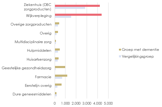 Figuur 2 Dementiepatiënten hebben vaker wijkverpleging en zorg in het ziekenhuis nodig
