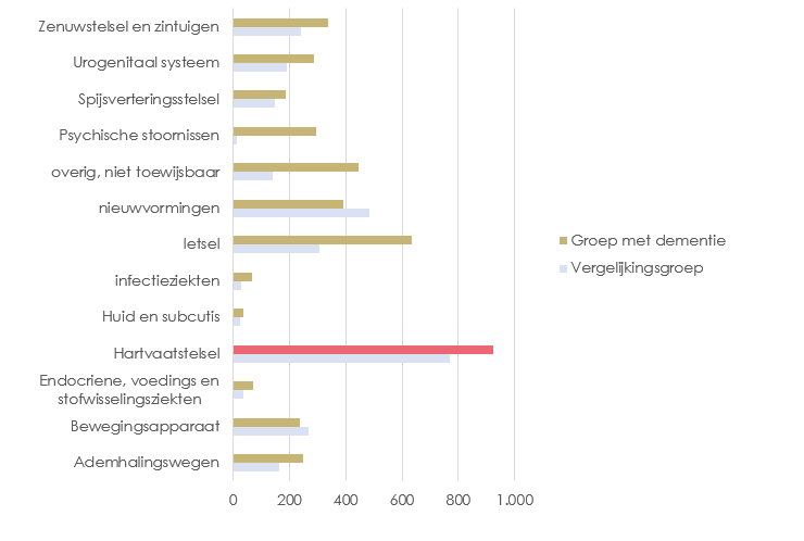Figuur 3 Aandoeningen aan het hartvaatstelsel komen vaker voor bij dementiepatiënten
