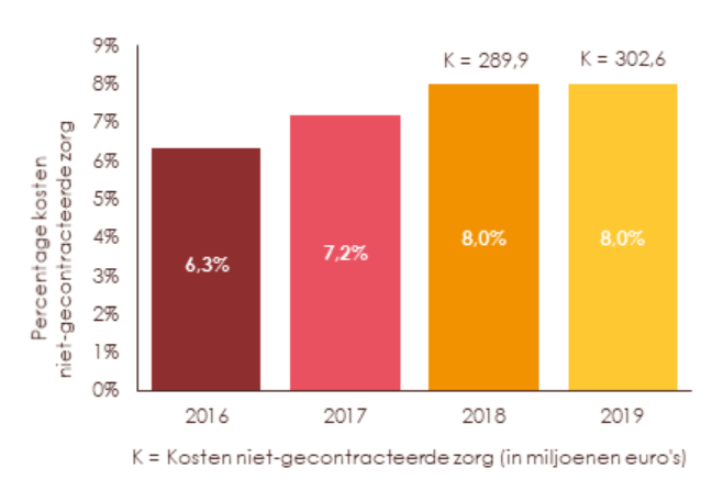 Figuur 2: Het aandeel niet-gecontracteerde zorg in kosten