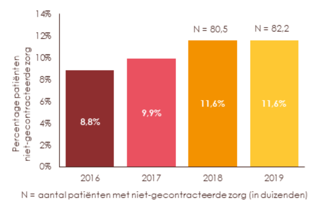 Figuur 1. Het aandeel patiënten met niet-gecontracteerde zorg