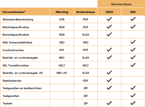 Bekijk de informatie in de berichtspecificaties. De pdf-versie geeft de informatie in beschrijvende vorm, terwijl de Excel versie per element de te implementeren informatie, zoals veldtype, -lengte, -identificatie, en dergelijke gestructureerd weergeeft. Lees ook de informatie uit het bedrijfs- en controleregels document. Daarin staat beschreven aan welke regels de informatie in het bericht moet voldoen. Dit is bepalend voor jouw software bij het opstellen van een geldig declaratiebericht. In het geval van een standaardtype XML zijn met de verwerking van de XSD en XSLT’s in jouw software de controle niveaus 1 t/m 5 uit het Bedrijfs- en controleregelsdocument geïmplementeerd.